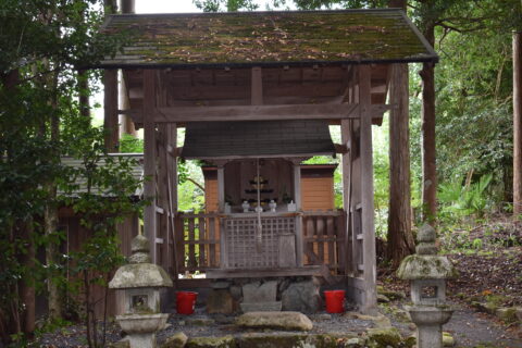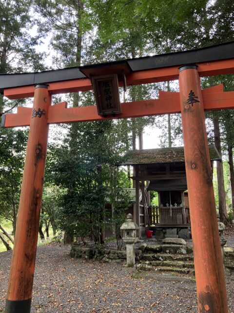 「田の神さま」から民家の間を歩いていけば律川に行き当たり、左手の杜に 「服部神社」 が見える。まさにその時!目の前を1頭の蝶がふわふわと飛んで行く…なんと、アサギマダラ!!ふと足元の畔を見てみると、どうやらフジバカマが数本。大原ではフジバカマの育成にも取り組んでいるようなので、アサギマダラが飛来するのだろう。今年初めてのアサギマダラとの遭遇だったが、あまりに突然で写真も撮れず残念。