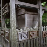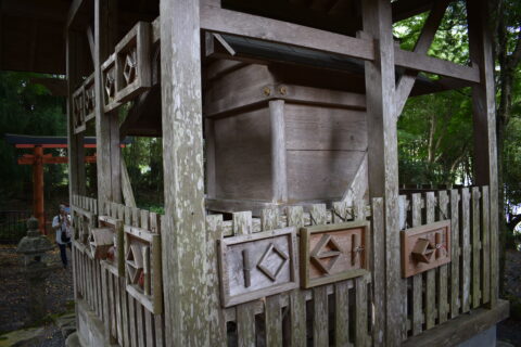 覆屋の内に小さなお社があり、覆屋の周囲には奉納された 「枡飾り」 が飾られている。よく見れば「米寿」の言葉が書かれている。