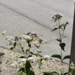 続いて、下御霊神社へ。途中、スタンプラリー集印帳を手にした人達とすれ違ったが、どうやらこれをお目当ての訪問も多いようだ。下御霊神社では、今年も御所近くの小学校で育てられた藤袴が拝殿周りに並べられていたが、やはり開花が遅れているようだ。前回はここで初めてアサギマダラに出会えて感動したが、今年は他のチョウの飛来も少ないように感じた。