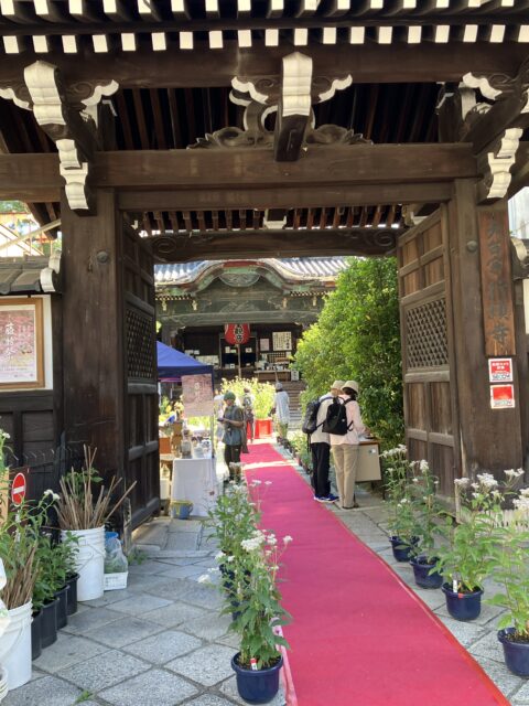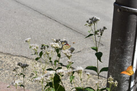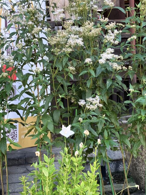 連休中は混雑しそうなので、初日に訪れてみた。今年も二条通との交差点を過ぎた辺りから、寺町通の両側にはそこかしこに藤袴の鉢が置かれている。開花具合もそれぞれだが、全体的に西側の鉢植えの方がよく開いているように感じた。革堂前の交差点近くでは、ツマグロヒョウモンのオスとメスが仲良く藤袴の蜜を吸いに来ており「アサギマダラもいるかな?」と期待がふくらむ。