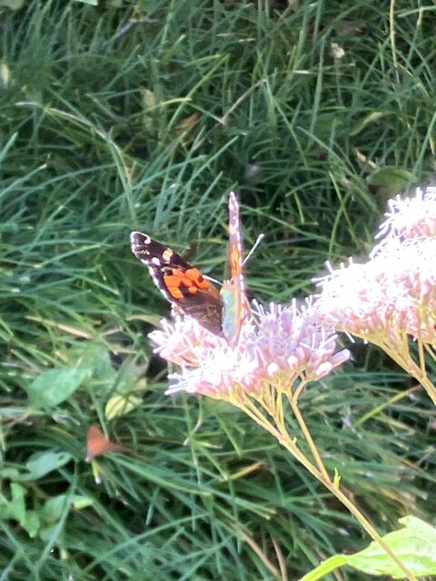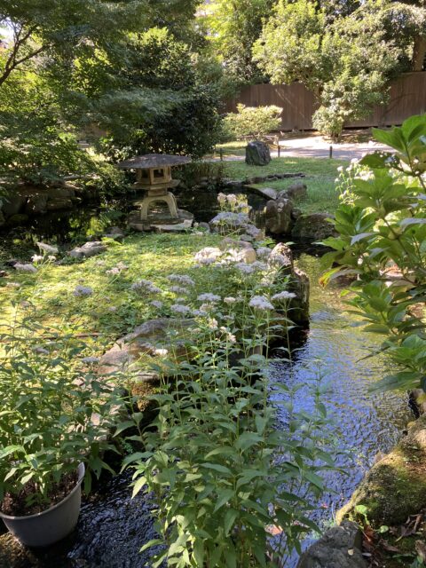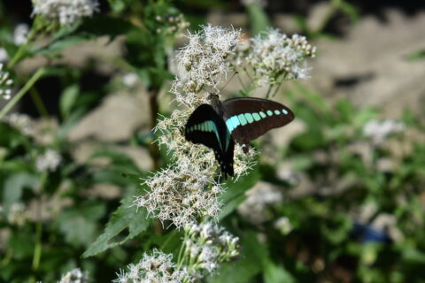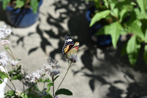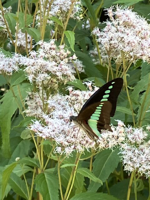 「閑院宮邸跡」 を訪れるのは初めてだったが、四阿と池のある広い庭園が心地良い場所。藤袴は、展示室入り口前と建物の北側の庭に置かれていた。北側の庭に置かれた藤袴には、多くのチョウが飛来。アサギマダラはここにもいなかったが、ツマグロヒョウモン、アオスジアゲハ、そして初めて見るヒメアカタテハなどが飛び交っている。ひらひらと舞うチョウ達に出会えただけでも満足。