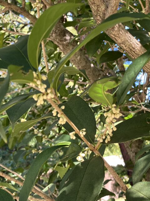 庭園を歩いていたら、ふっと風がやさしい香りを運んできた。あれ?銀木犀!まだ蕾だけれど…。最近は金木犀を多く見かけるが、私は清楚な白い花を咲かせ、香りもあまり自己主張しない銀木犀の方が好き。… 秋の近づく足音が聞こえる。