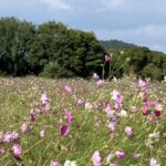 11月も近く “コスモスはまだ咲いているかな?” という私の心配をよそに、白、ピンク、濃桃色など様々なコスモスが広い花畑一面に咲き乱れ、風に揺れている。よく見れば花にも微妙な違いがあり、"コスモスってこんなに色々な種類があるんだ!" と驚き。また中央付近にはススキが群生しており、陽光に光り輝くススキの穂とピンクのコスモスの取り合わせも秋らしい。そしてその近くでは、ノゲイトウ (セロシア) がロウソクのようにツンツンと咲いている。ドライフラワーみたいだけど、可愛い。花畑を歩いていると、バッタがピョンピョン飛び跳ねているのに出会い、豊かな自然がここにはあるって感じた。
