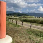 今回は 「おふさ観音」 に参拝してから、徒歩で 「藤原宮跡」 に移動。「おふさ観音」山門前の道を東進し、縄手町の交差点を過ぎると、まもなくこんもりとした 「大極殿跡」 の森が右手に見えてくる。交差点には「秋ゾーン →」の目印。ピンクや白のコスモスが咲き乱れる景色が目に飛び込んできた!