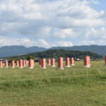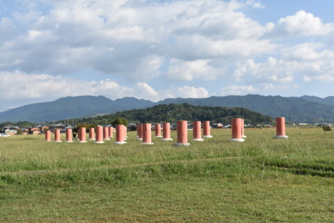 特別史跡 「藤原宮跡」 は、約1300年前に持統・文武・元明の三代の天皇が治めた藤原京 (694-710年) にあった宮の跡。東を天香具山 (あまのかぐやま)、西は畝傍山 (うねびやま)、そして北を耳成山 (みみなしやま) の「大和三山」に囲まれた場所に位置する。