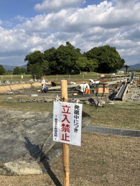 帰り際、大極殿跡近くで発掘調査をしているようなので、ちょっぴり見学。奈良文化財研究所が、9月30日から大極殿院の西側回廊の調査のために発掘中とのこと。世界文化遺産登録に向けてどんな成果があるのか楽しみ。