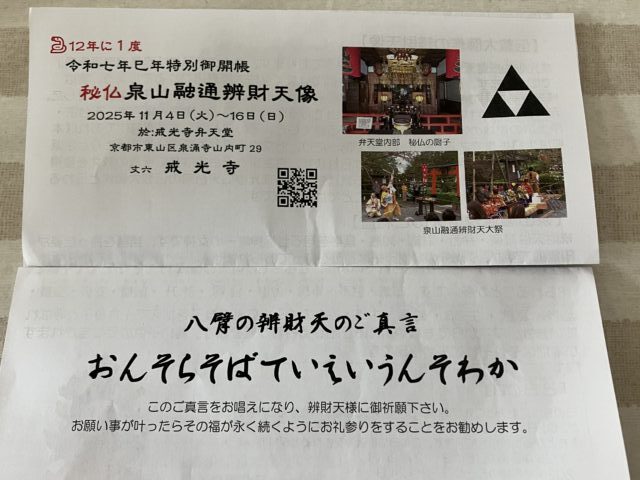 泉涌寺塔頭で「丈六さん」として知られる 「戒光寺」 の弁天堂に祀られる秘仏 “泉山融通辨財天" が特別御開帳されていると知り参拝。