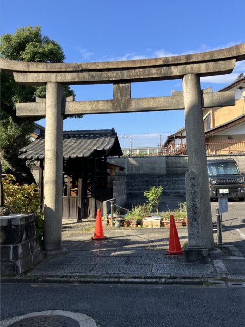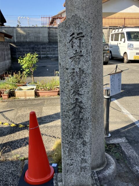 東に向いて建つ石造の明神鳥居の前には、「行者神變大菩薩 東寺執行」の石標。ここは、東寺執行 (しぎょう) 職を世襲した阿刀家の邸跡。