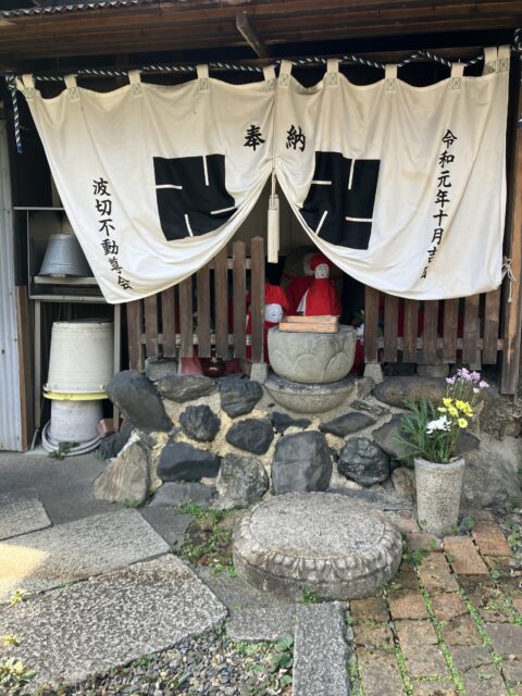 祠には鉄格子がはめられているので、不動明王の姿はよく見ないとわからない。が、ふっと目が合った (と感じた) 瞬間、言葉では表せないような不思議な感覚を味わった。また明王前の井泉には、かつては水が湧き近所の人々が水を汲みに来ていたらしい。しかし、1964 (昭和39) 年の東海道新幹線開通直後より徐々に湧水量が減り、現在は完全に止まってしまったとのこと。