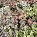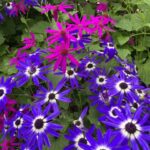 サクラソウ科プリムラ属の ウインティー (Winty) は、濃い桃色のサクラソウのイメージとは違い、どれもパステルカラー。ライムグリーンや桜を思わせる薄いピンク、青紫がかった色などがあるが、どれもグラデーションがあるのが面白い。キク科の セネッティ (Senetti) や ボンザマーガレット (Bnza Margaret) は、鮮やかな色が印象的。どれも花色の少ない時期に咲いてくれるようで、今や園芸家の人達には人気の種類とか。