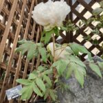 また、同じ松本農園の 「御国の曙 みくにのあけぼの」 は、上記二つとは対照的に、清楚な白色が目を惹く。奈良県の石光寺 (染寺) に昭和中期以前よりあるという丸弁の白い「御国の旗」から切弁に枝変わりしたものが元という。切弁の花びらが白い羽のようで個性的。