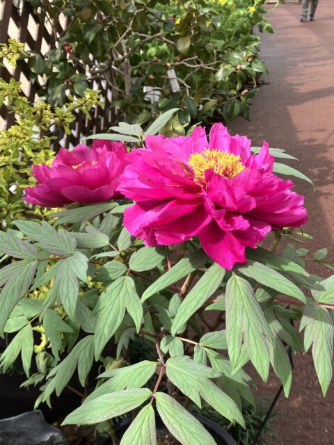 いよいよ「花の王様」のお出まし!そう、美しく魅力的な女性を表す例え「立てば芍薬、座れば牡丹、歩く姿は百合の花」のひとつ “牡丹" が艶やかな姿でお待ちかね。牡丹にも色々な種類があるようで、甲乙つけ難い美しさ。
