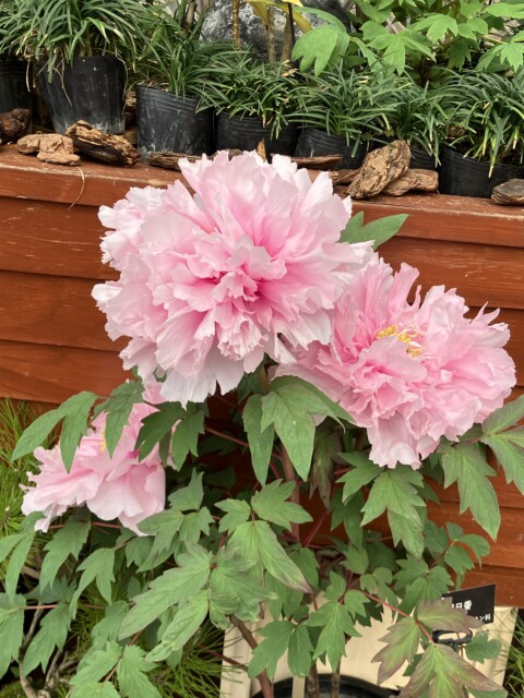 そしてふんわりと柔らかな雰囲気のピンクの牡丹は、中村農園 (島根県松江市) の新品種 「明日香」 。千重大輪の抱え咲き。中心部が濃い桃色でピンクのグラデーションがとてもきれい。